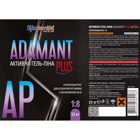 Активная гель-пена EKOKEMIKA PRO-LINE ADAMANT PLUS — это профессиональное средство для бесконтактной мойки автомобиля, которое эффективно удаляет даже самые стойкие загрязнения, такие как дорожная грязь, масла, битумные пятна, следы насекомых и атмосферные отложения. Благодаря уникальной гелевой формуле и пропорции разведения 1:8 пена плотно покрывает поверхность, обеспечивая длительное воздействие и максимальную очистку.