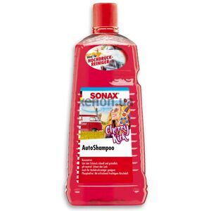 Недорогой автошампунь концентрат с запахом  SONAX AutoShampoo Cherry Kick 318541 в большой упаковке 2л быстро и тщательно удаляет загрязнения со всех лакокрасочных, резиновых, пластиковых, виниловых и стеклянных поверхностей. Формула с нейтральным pH защищает лакокрасочное покрытие и...
