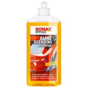 Концентрированный шампунь  SONAX Glanz Shampoo Konzentrat (Gloss Shampoo Concentrate) 314200  проникает в грязь и разжижает ее, не разрушая защитный слой из воска на лакокрасочном покрытии. Великолепно очищает все лакокрасочные, резиновые, пластиковые, виниловые и стеклянные...