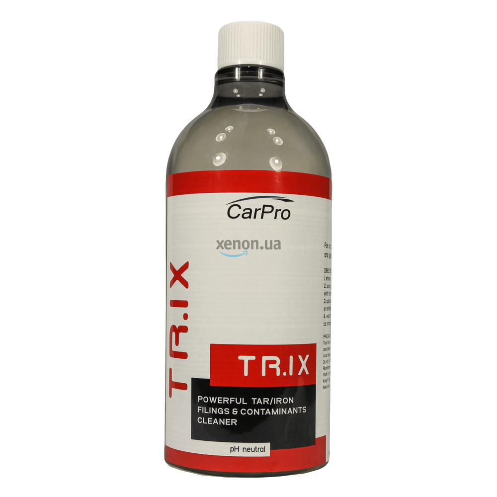 CarPro Trix – гибридный очиститель металлических вкраплений и битума. Подходит для обработки пластика, металла, стекла, хромированных деталей, лакокрасочного покрытия, двигателя и колесных дисков.