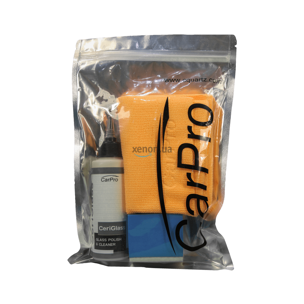 CarPro CeriGlass — полировальная паста и очиститель для стекол автомобиля. Устраняет кислотный налёт, разводы и мелкие царапины. Допускается использовать как вручную, так и при помощи полировальных машин. Подходит для полировки стеклянных и пластиковых фар.