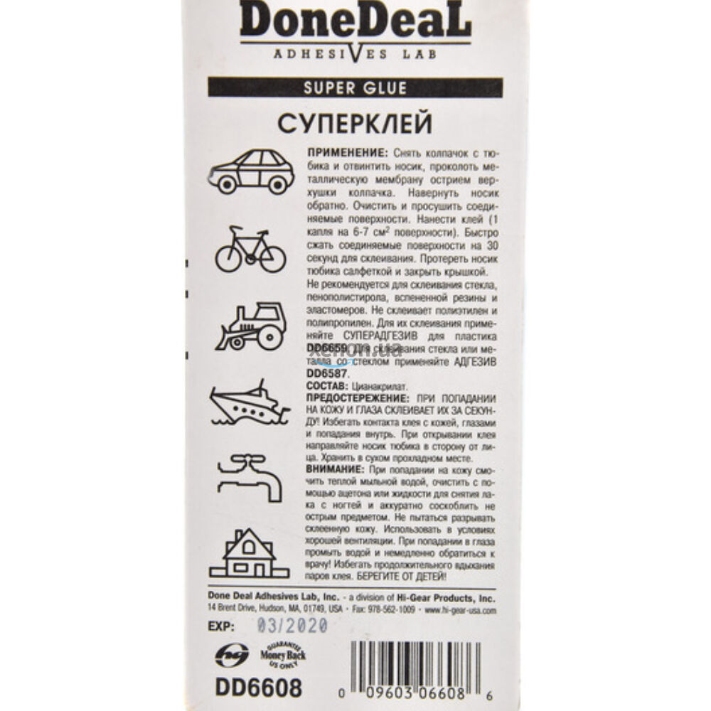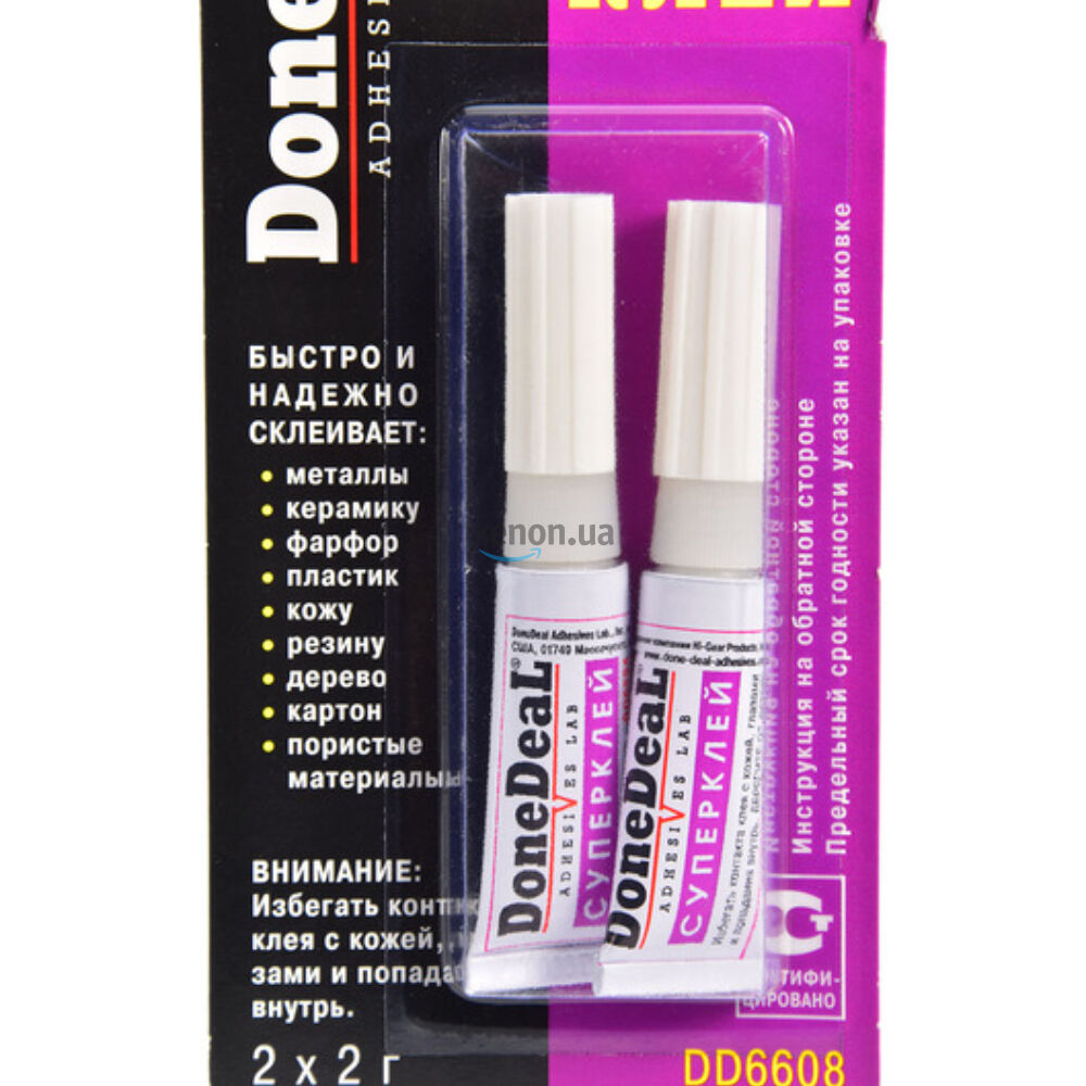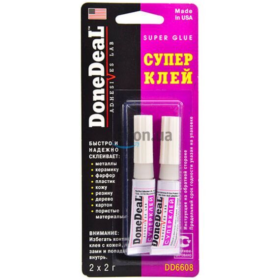 Суперклей (2 x 2 г) Done Deal DD6608. Универсальный цианакрилатный клей (суперклей) для склеивания различных материалов, обладающий высокими тиксотропными свойствами (не стекает с вертикальных поверхностей). Универсальный суперклей, предназначенный для быстрого и надежного склеивания различных материалов. Обладает высокой прочностью.