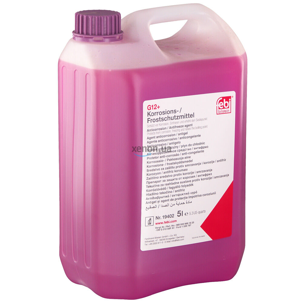 Премиальный фиолетовый концентрат-антифриз Febi G12+ (G12 PLUS) 19402 объемом 5 литров. В двигателях внутреннего сгорания значительная часть энергии, получаемой при сгорании топлива, преобразуется в теплоту. Чтобы предотвратить перегрев двигателя и последующий выход его механических компонентов из строя, система охлаждения двигателя должна эффективно рассеивать теплоту в окружающую среду. Часть теплоты, отводимой системой охлаждения, в случае необходимости используется для нагрева воздуха в салоне автомобиля.