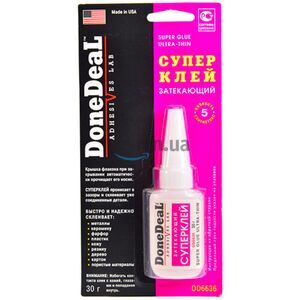 Супер клей затекающий (30 г) Done Deal DD6636. Суперклей затекающий для склеивания различных материалов, обладающий высочайшей текучестью, смачиваемостью и адгезией. Суперклей проникает в зазоры и склеивает уже соединенные детали. Универсальный цианакрилатный клей (суперклей) для быстрого и...