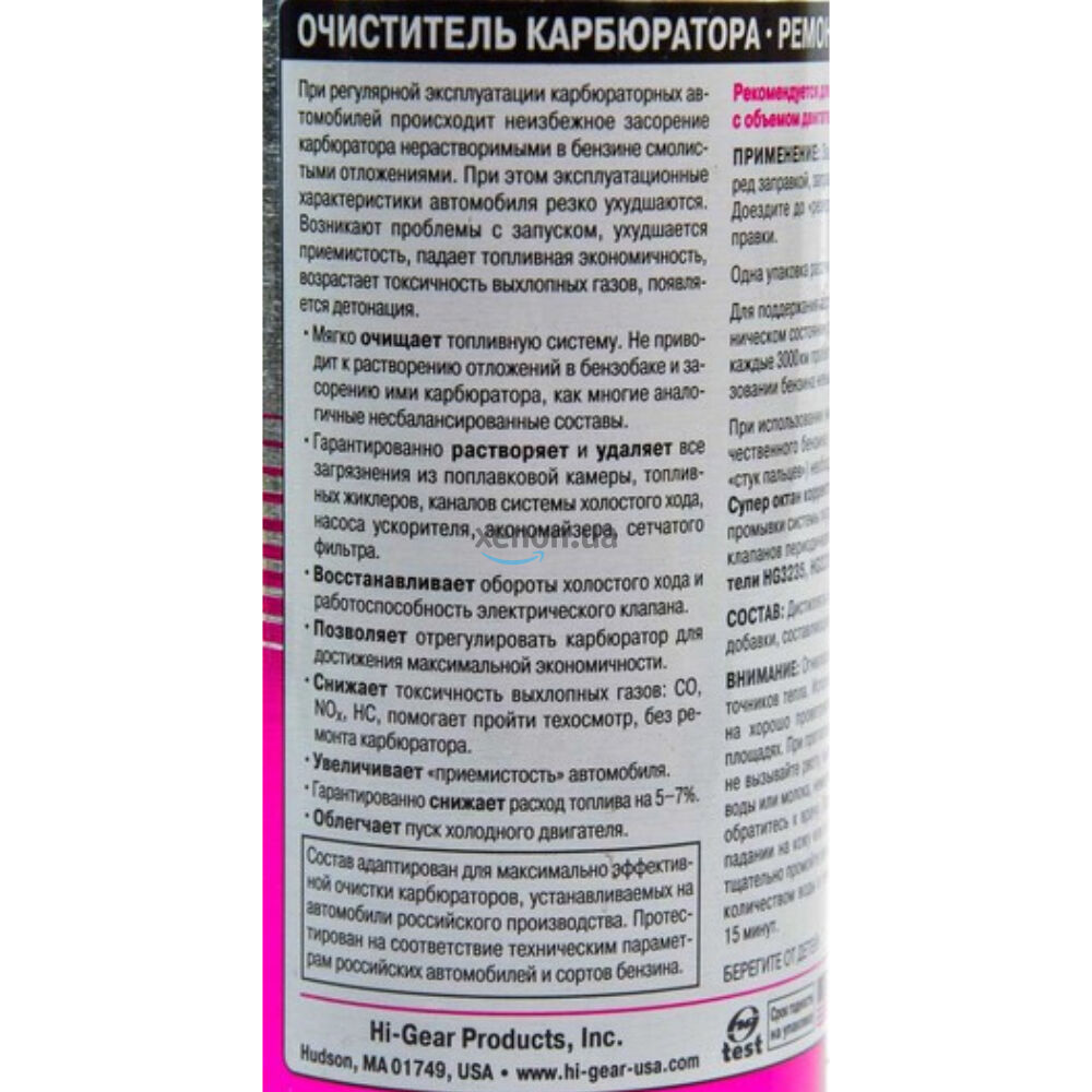 • Ремонтный очиститель карбюратора Hi-Gear HG3205 мягко очищает топливную систему. Не приводит к растворению отложений в бензобаке и засорению ими карбюратора, как многие аналогичные несбалансированные препараты