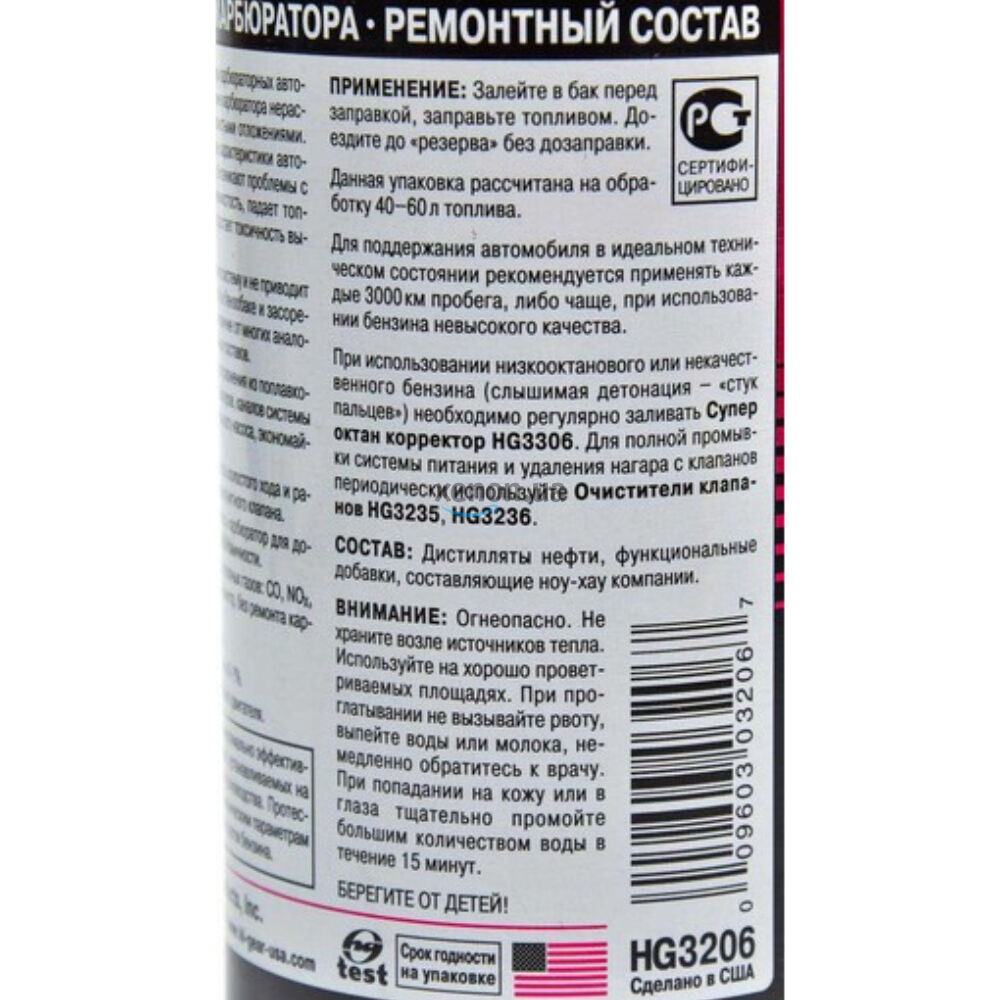 - Состав Hi-Gear HG3206 адаптирован для максимально эффективной очистки карбюраторов, устанавливаемых на автомобили российского производства. Протестирован на соответствие техническим параметрам российских автомобилей и сортов бензина