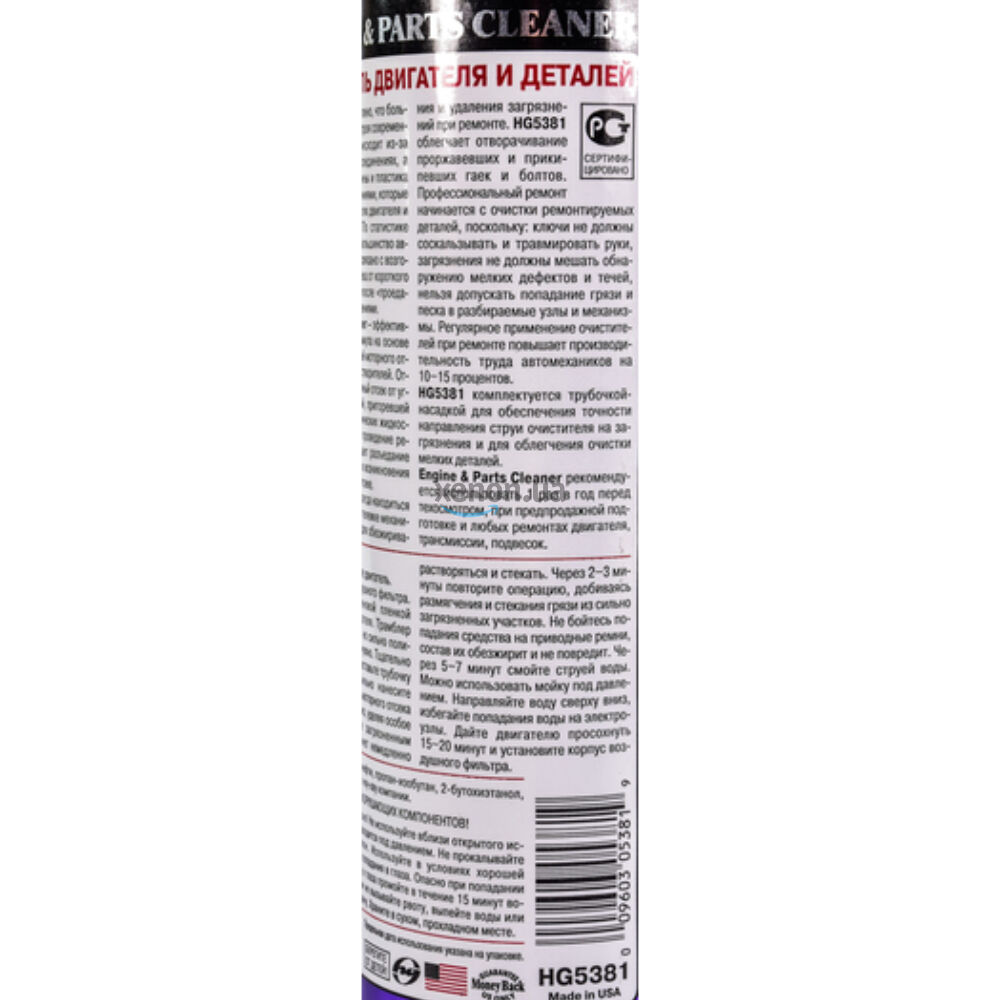 Регулярное использование «Очистителя двигателя и деталей» HG5381 позволяет поддерживать подкапотное пространство в чистоте и продлить срок службы электросоединений.