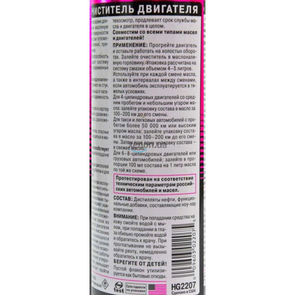 - Очиститель двигателя Hi-Gear HG2207 эффективно очищает во время движения автомобиля всю масляную систему и внутренние поверхности двигателя от углеродистых отложений, нагара, лаковых пленок и препятствует их образованию