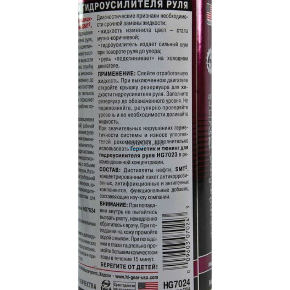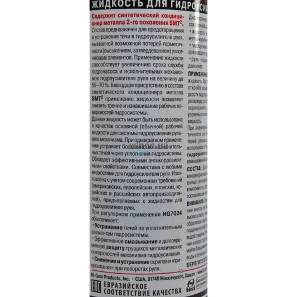 - Кондиционер для гидроусилителя руля Hi-Gear HG7024 обеспечивает эффективное смазывание и долговременную защиту трущихся металлических поверхностей механизма гидроусилителя