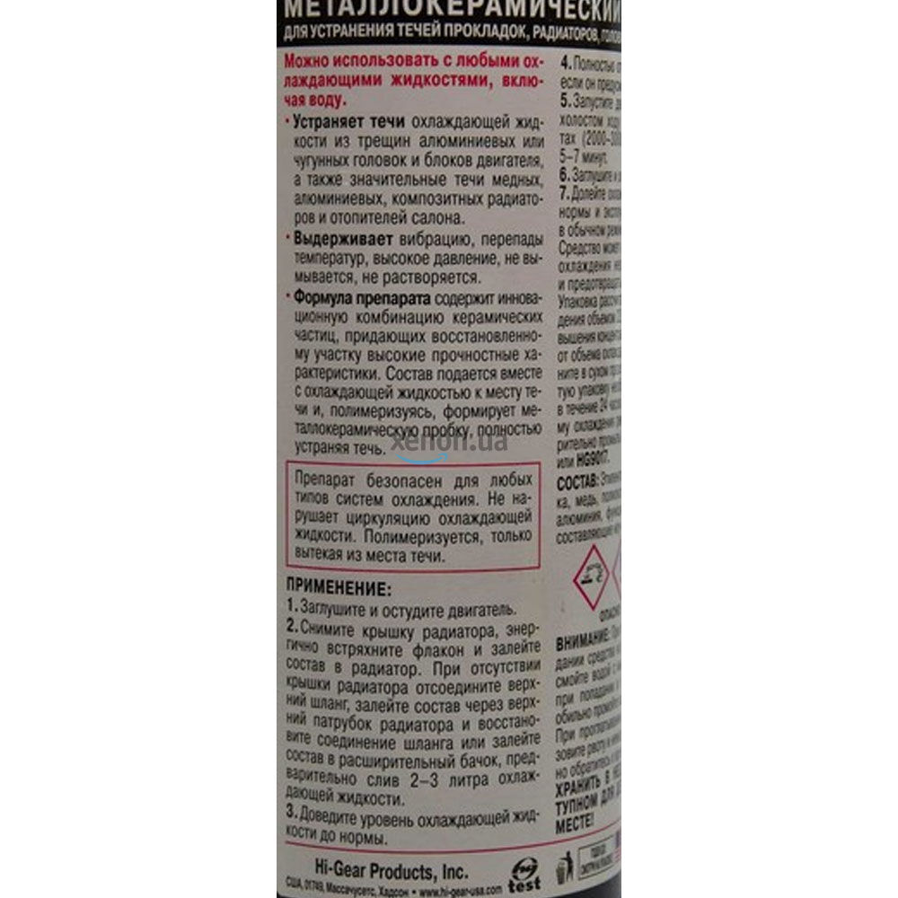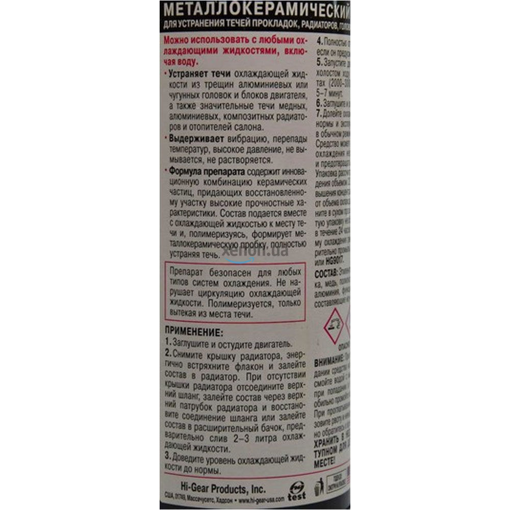 Hi-Gear Radiator & Block Seal Metallic-Ceramic металлокерамический герметик для ремонта ГБЦ, БЦ, прокладок, радиаторов 444 мл