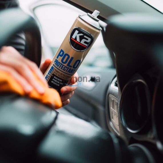 Эффективная полироль K2 Polo Protectant K418 750мл хорошо очищает от пыли, свежих и въевшихся загрязнений.