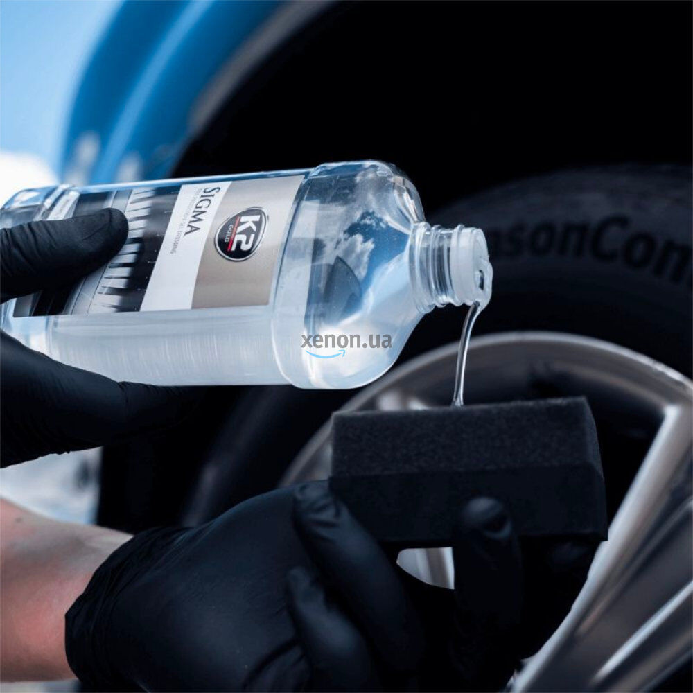 Комплект из молочка-чернителя резины и пластика и аппликатора, предназначенный для ухода и защиты автомобильных покрышек, молдингов, неокрашенных бамперов или колёсных арок. Инновационная формула обеспечивает глубокое проникновение средства в резиновую поверхность, восстанавливая их внешних вид и гарантируя высокую устойчивость к ссыханию и растрескиванию. Обновляет выцветшие пластмассовые поверхности, восстанавливая их заводской цвет. K2 SIGMA G1571 500мл надёжно защищает обработанные поверхности от внешних негативных факторов окружающей среды, ультрафиолетового излучения и предотвращает налипание пыли.