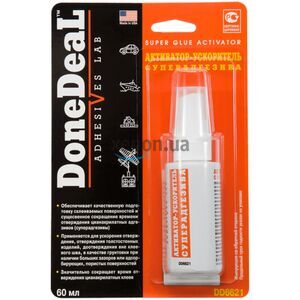 Спрей - активатор для суперадгезивов (60 мл) Done Deal DD6621. Активатор-ускоритель отвердевания любых суперклеев на основе цианакрилатов обеспечивает качественную подготовку склеиваемых поверхностей и существенное сокращение времени отверждения цианокрилатных адгезивов (суперадгезивы)....