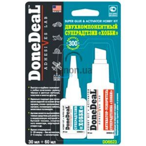 Супер клей (30 г) с активатором (60 г) Done Deal DD6623 Двухкомпонентный Суперадгезив DD6623 быстро и надежно склеивает в любых сочетаниях: резину, черные и цветные металлы, пластики и многое другое. Идеально подходит для склеивания изделий на основе фторкаучуков, этиленпропиленовых...