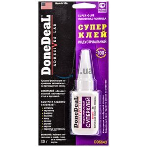 Супер клей индустриальный (30 г) Done Deal DD6643. Индустриальный суперклей, обладающий высокими прочностными характеристиками, повышенной устойчивостью к агрессивным средам и перепадам температуры. Предназначен для быстрого и надежного склеивания различных материалов. Характеристики...
