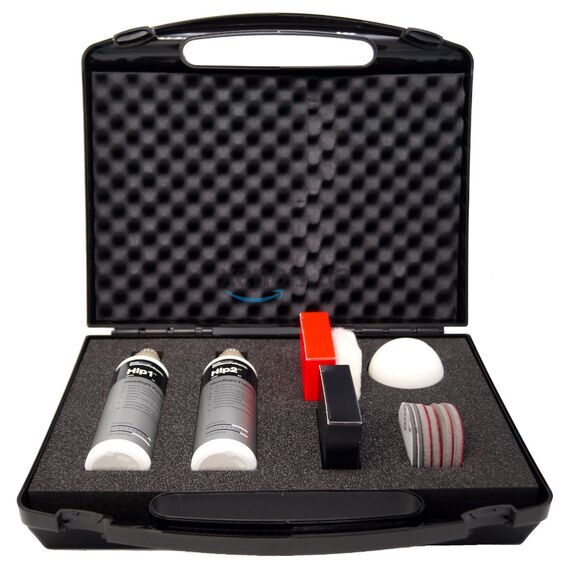 Набор для полировки фар Koch Chemie Headlight Polish Set предназначен для восстановления внешнего вида фар. Набор поставляется в специальном кейсе для удобства транспортировки и хранения всех компонентов в одном месте. Благодаря специальному полировальному кругу удаётся добиться оптимальной температуры полировки. При превышении данной температуры круг изменяет свой цвет, это значит что нужно уменьшить скорость или усилие полировки. В наборе две пасты: первая абразивная, вторая финишная с защитным покрытием.