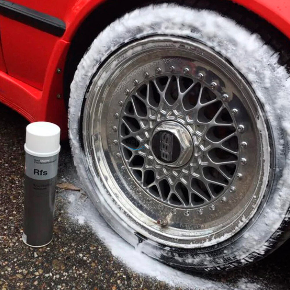Состав Koch Chemie Rfs Kcu-Reifenschaum для очищения и придания ухоженного вида резиновым поверхностям. При нанесении на поверхность автошин, образуется плотная пена, которая, проникая под ворс резины, вычищает её. Растворённая грязь стекает с поверхности вместе с пеной.