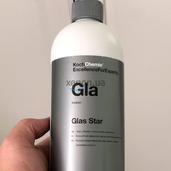 Koch-Chemie Glas Star - концентрат на спиртовой основе для чистки стекла и других твёрдых спиртостойких поверхностей. Очищает даже самые сильные загрязнения как насекомые, остатки воска, силикона и неглубокие помутнения краски. Можно применять для стекла из поликарбоната. Прекрасно применять зимой для удаления замутнений от дорожных реагентов.