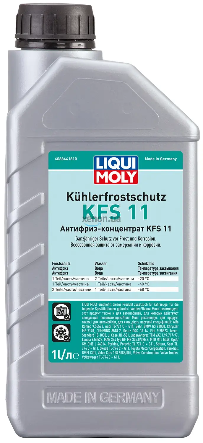 Антифризы от Liqui Moly давно и заслуженно пользуются популярностью среди автомобилистов всего мира. Если Вы желаете получить достойное качество и при этом оптимально сэкономить, рекомендуем заказать антифриз (концентрат) Kuhlerfrostschutz KFS 11, который совсем несложно купить на сайте MasloBaza.com. Эта жидкость синего цвета, поставляющаяся в литровой емкости, разводится дистиллированной водой и заливается в систему охлаждения, предварительно промытую специальным очистителем.
