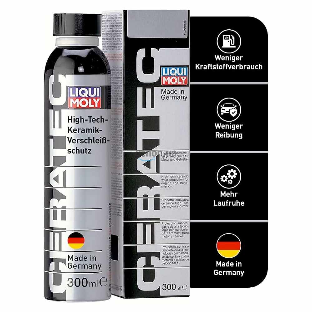 Присадка Liqui Moly Cera Tec создана на основе синтетического молибдено-органического комплекса и частиц микрокерамики. Присадка сглаживает микронеровности и упрочняет поверхностные слои металла, обеспечивает экстремально низкий коэффициент трения. Полученная антифрикционная пленка обладает долговременным эффектом и сохраняется на протяжении 50.000 км пробега. Используется с любыми стандартными моторными маслами. Позволяет увеличить ресурс двигателя, снизить расход топлива и масла, способствует увеличению мощности двигателя и снижению шума. Применение: перед применением желательно промыть систему смазки двигателя средством MotorClean. CeraTec добавляется в свежее моторное масло. 300 мл присадки предназначено для 5 л моторного масла. Обладает долговременным эффектом в течение 50.000 км пробега. (Соблюдать рекомендации производителей автомобилей по интервалам смены масла, не промывать двигатель в период действия присадки).
