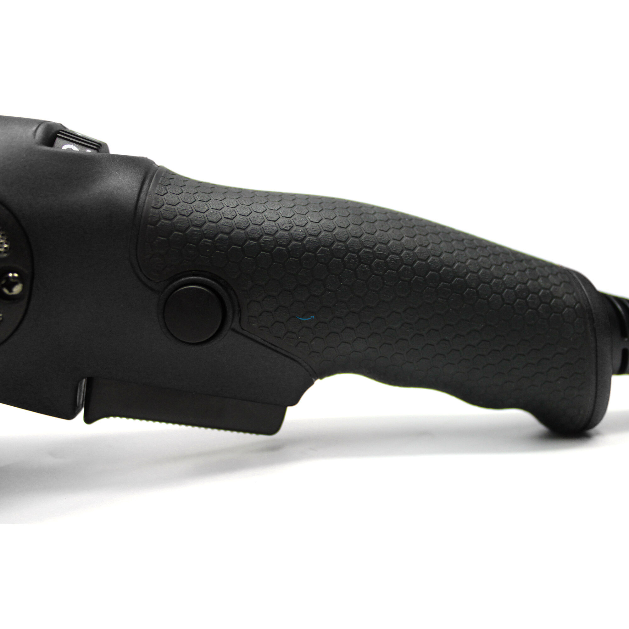 У машинки – электродвигатель мощностью 1000 Вт с системой мягкого старта и 6-ти скоростной переключатель оборотов в диапазоне 800…3300 об/мин. Это позволяет выбрать рабочий режим, исходя из текущих задач. Курок контроля оборотов оснащён блокиратором хода.