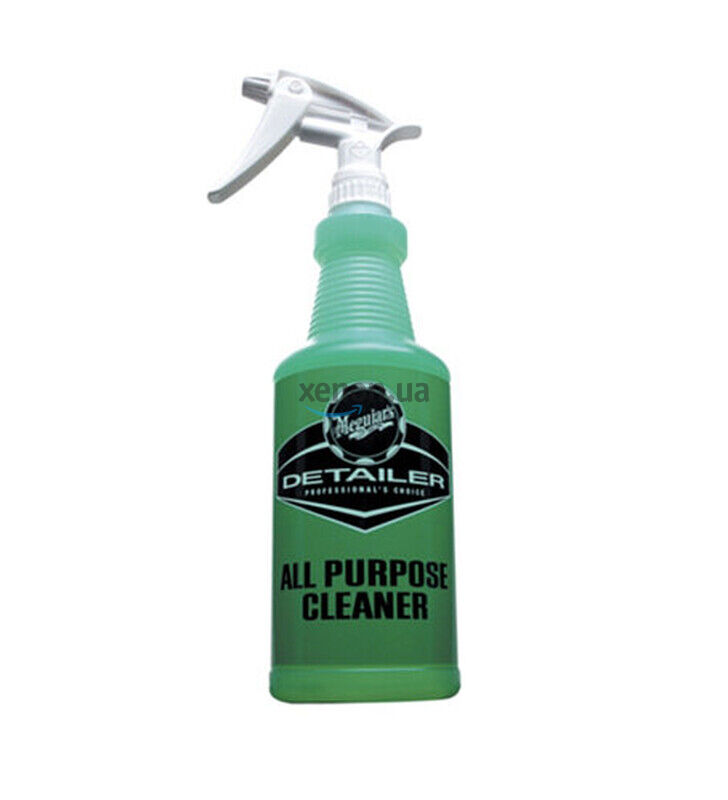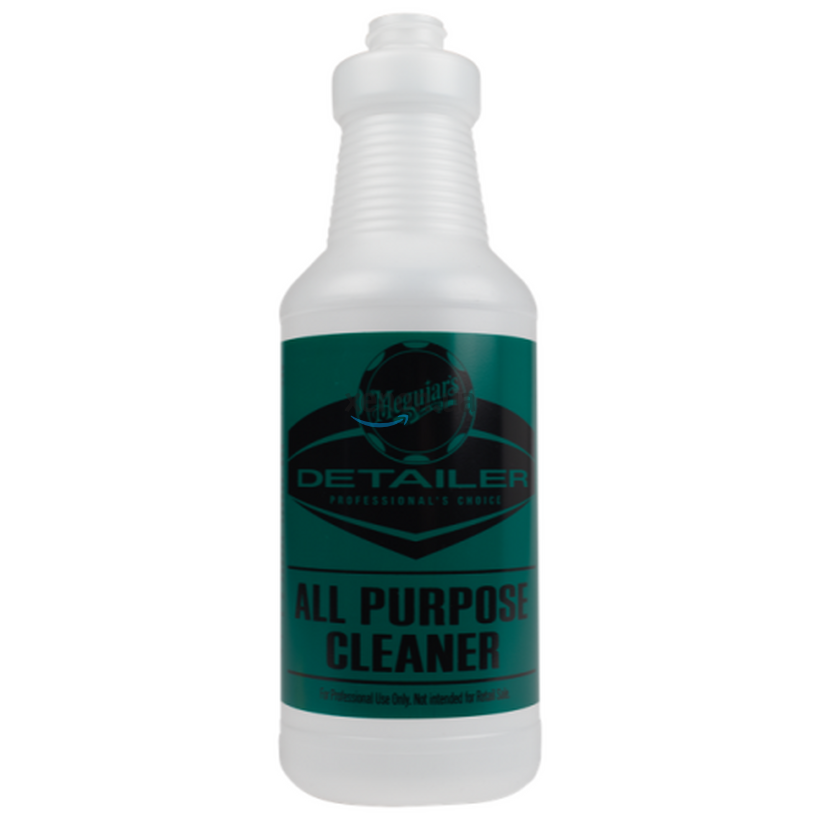 Пластиковый бутыль с зеленой этикеткой All Purpose Cleaner предназначен для удобства работы с универсальным очистителем All Purpose Cleaner Plus. На обратной стороне емкости имеется шкала разведения.