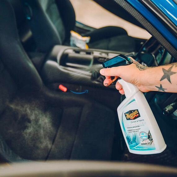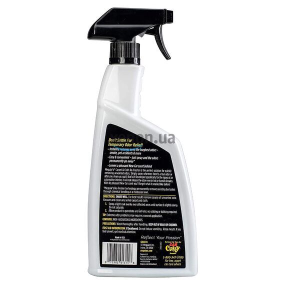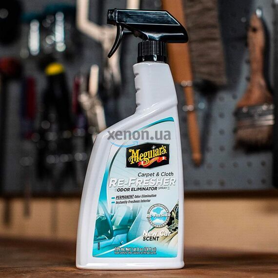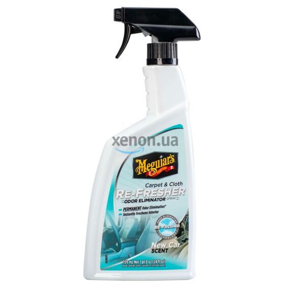 Нейтрализатор неприятных запахов Meguiars Carpet Cloth Re Fresher в удобной форме спрея эффективно устраняет нежелательные запахи, борясь с причиной на молекулярном уровне, а не маскируя их. Удаляет запах из обшивки салона, ковров, текстиля, придает аромат свежести.