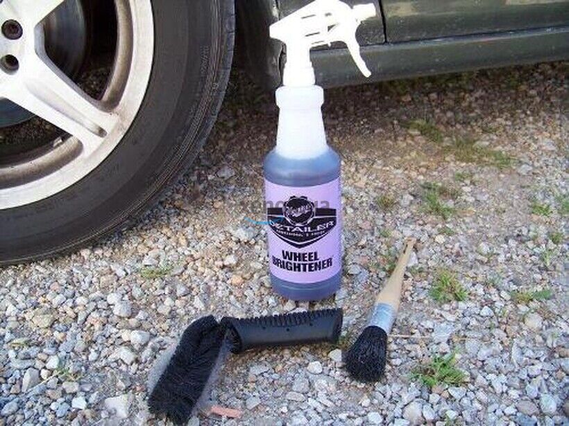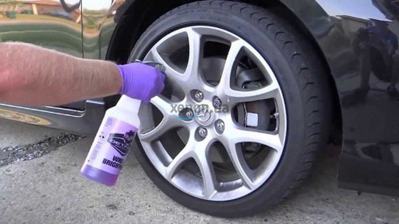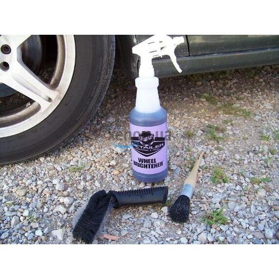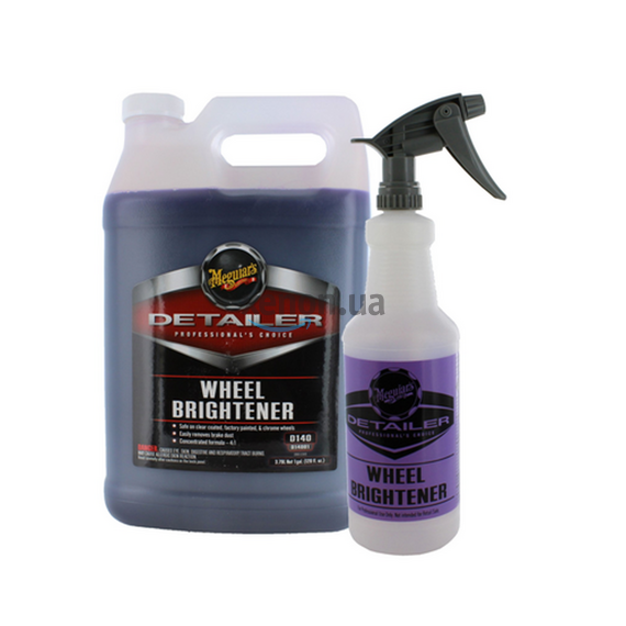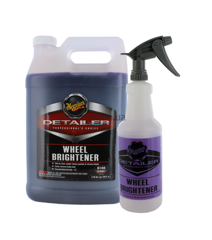 Пластиковая емкость с фиолетовой этикеткой и маркировкой D140 Detailer Wheel Brightener очень удобна разведения и последующего нанесения средства. На обратной стороне емкости имеется шкала разведения.