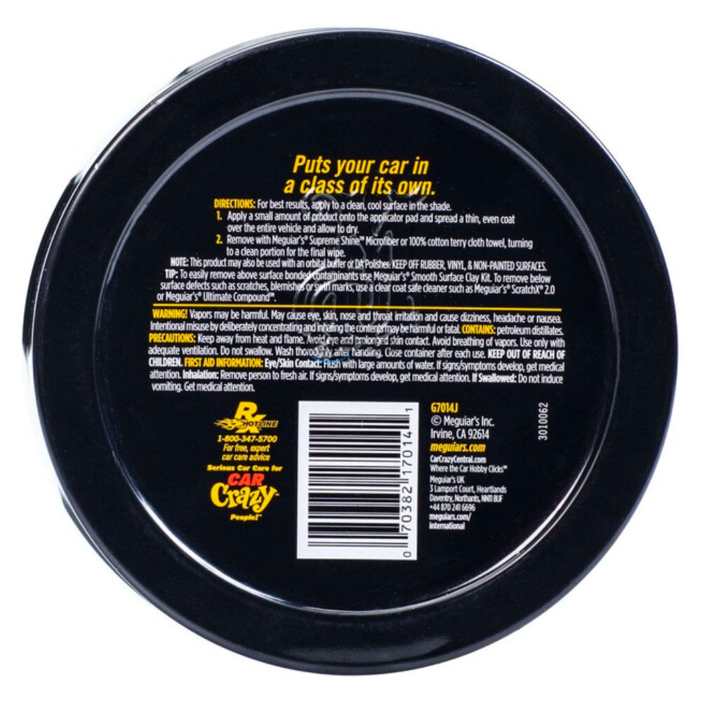 Автомобильный воск премиум-класса Meguiar\s Gold Class Carnauba Plus Paste Wax G7014J обеспечивает надежную, длительную защиту кузова. Запатентованная формула позволяет достичь потрясающих результатов за короткое время.