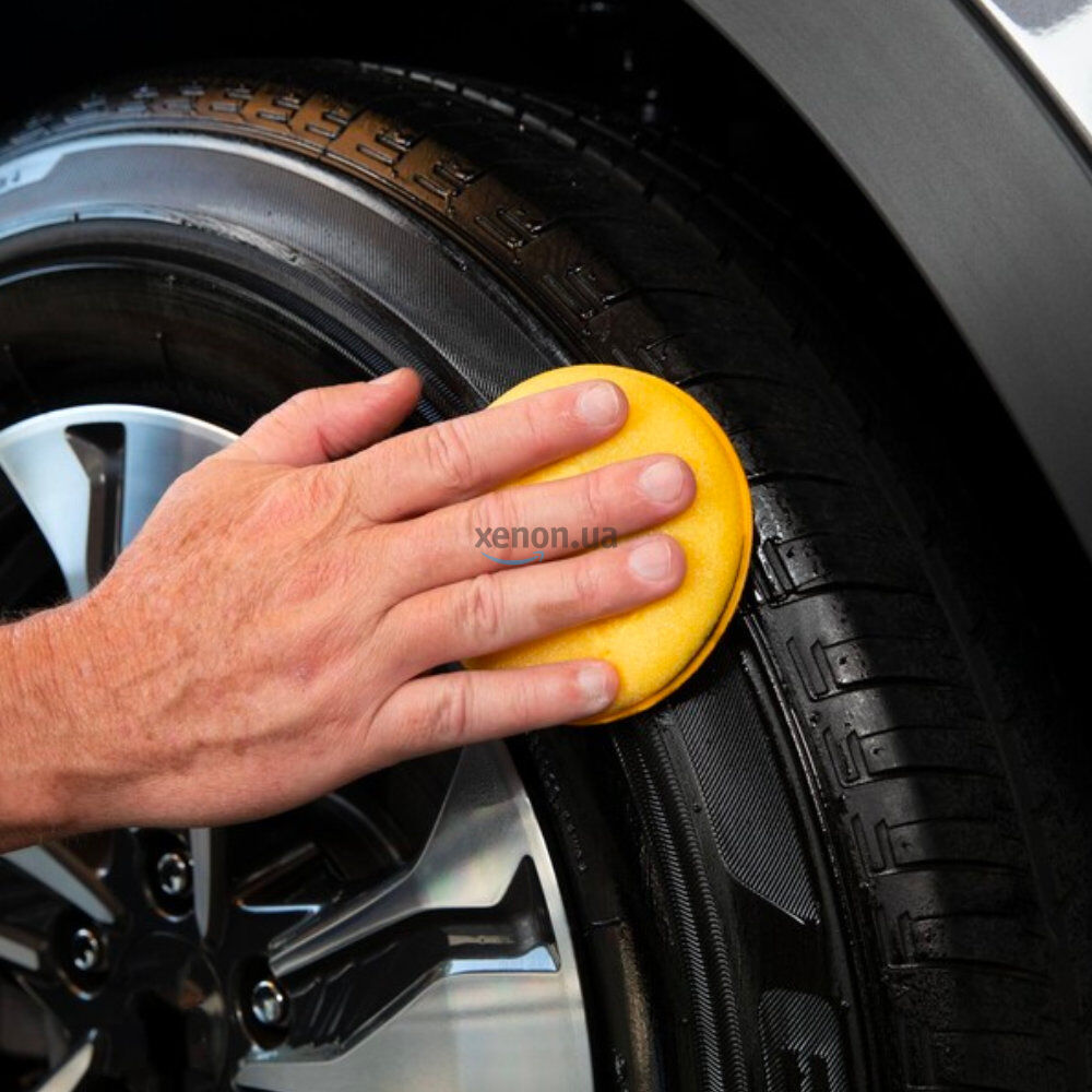 Эффект чернения сохраняется длительное время благодаря водоотталкивающим и анти-озонантным полимерам в составе, которые также защищают шину от растрескивания и продлевают ее срок эксплуатации. Придает шинам ухоженный внешний вид.