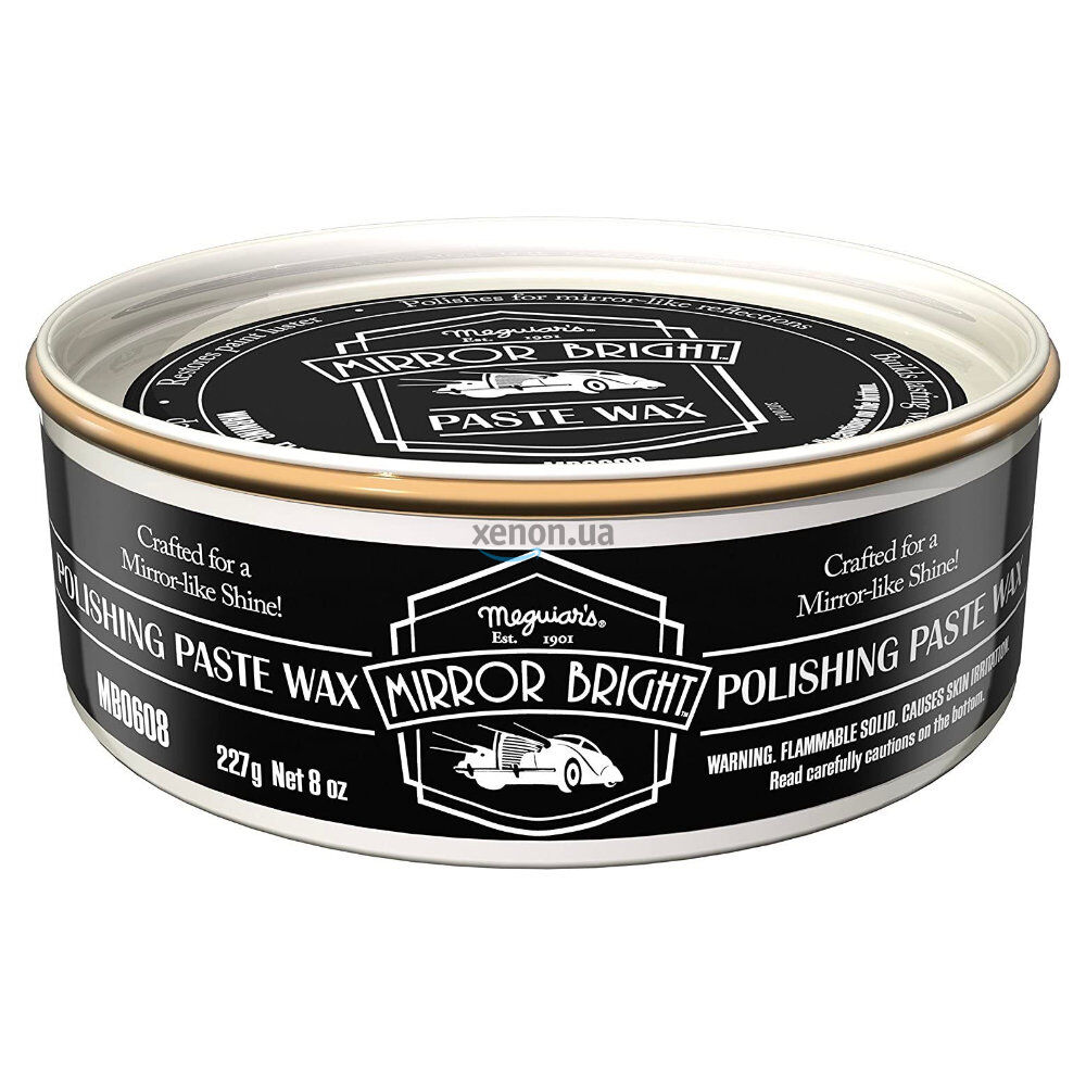 Meguiar\s Mirror Bright™ Polishing Paste Wax MB0608EU аккуратно полирует поверхность, придавая ей зеркальный блеск и глубину цвета, а соединение уникальных натуральных и синтетических компонентов обеспечивают превосходную защиту.