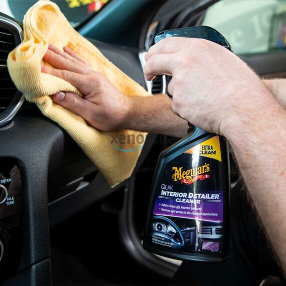 Meguiars Quik Interior Detailer Cleaner. Быстрый и безопасный способ очистки абсолютно любой поверхности интерьера - пластик, кожа, винил, металл, жидкокристаллические экраны. За считанные минуты Вы можете почистить интерьер Вашего автомобиля и придать приятный аромат.