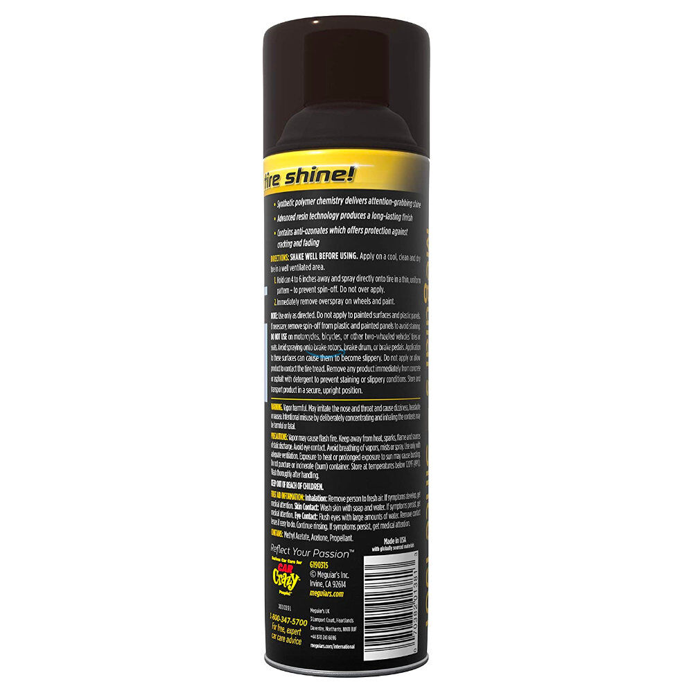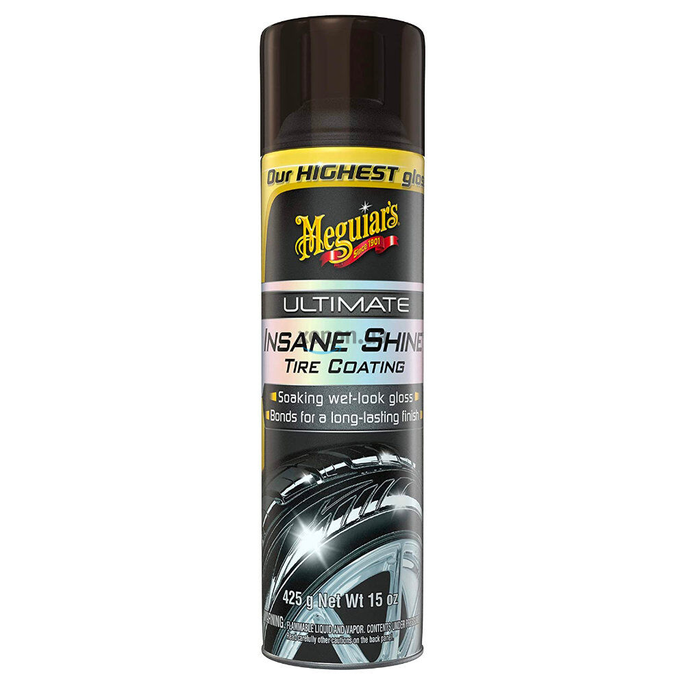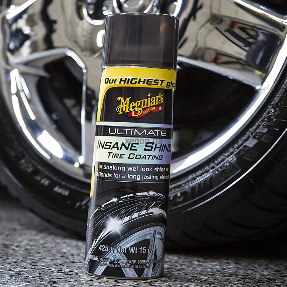 Новый спрей для чернения резины Meguiars Ultimate Insane Shine Tire Coating G190315, придаст шинам выраженный блеск и защитит от растрескивания и иссыхания.