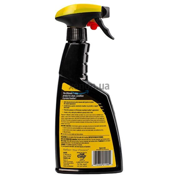 Meguiar's Ultimate Leather Detailer 473 мл G201316 - средство 3 в 1 для очистки, кондиционирования и защиты кожаного салона автомобиля. Продукт деликатно удаляет загрязнения и восстанавливает естественный вид кожи. В состав формулы входит эстракт алоэ, который смягчает кожу и делает ее мягкой наощупь. Не оставляет жирного блеска.