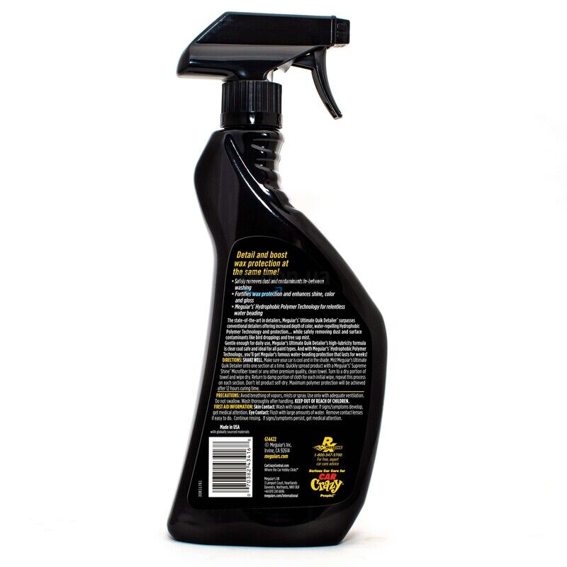 Ultimate Quik Detailer - революционный продукт для ухода за кузовом автомобиля, промежуточный этап между мойкой и воскованием кузова. Усиливает защитные свойства воска. Обладает ощутимым гидрофобным эффектом, который выдерживает мойки. Удаляет с поверхности пыль и отпечатки пальцев, поднимая глубину цвета. Безопасен для всех типов лакокрасочных покрытий.