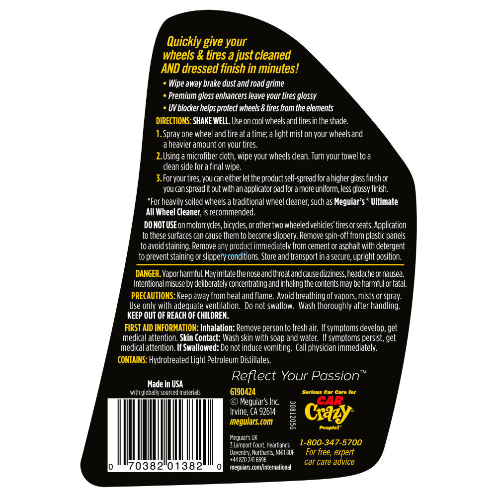 Позволяет очистить колесные диски и шины за считанные минуты. Meguiars Ultimate Waterless Wheel Tire G190424 придает им великолепный блеск. Для использования данного средства не нужна вода.