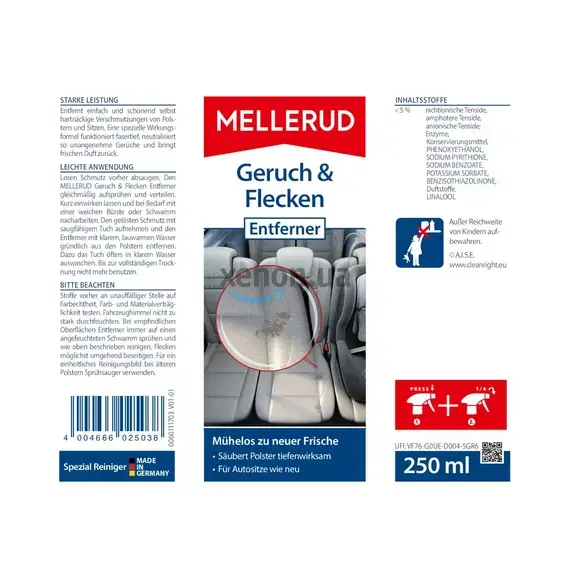 Со средством для удаления запахов и пятен MELLERUD (2010025038) вы спокойно отправитесь в свое следующее путешествие. Устраняется стресс и волнение от появления возможных несвоевременных пятен на обивке вашего автомобиля или домика на колесах. Этот продукт является идеальным средством для поддержания чистоты в вашем автомобиле.