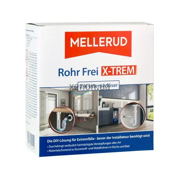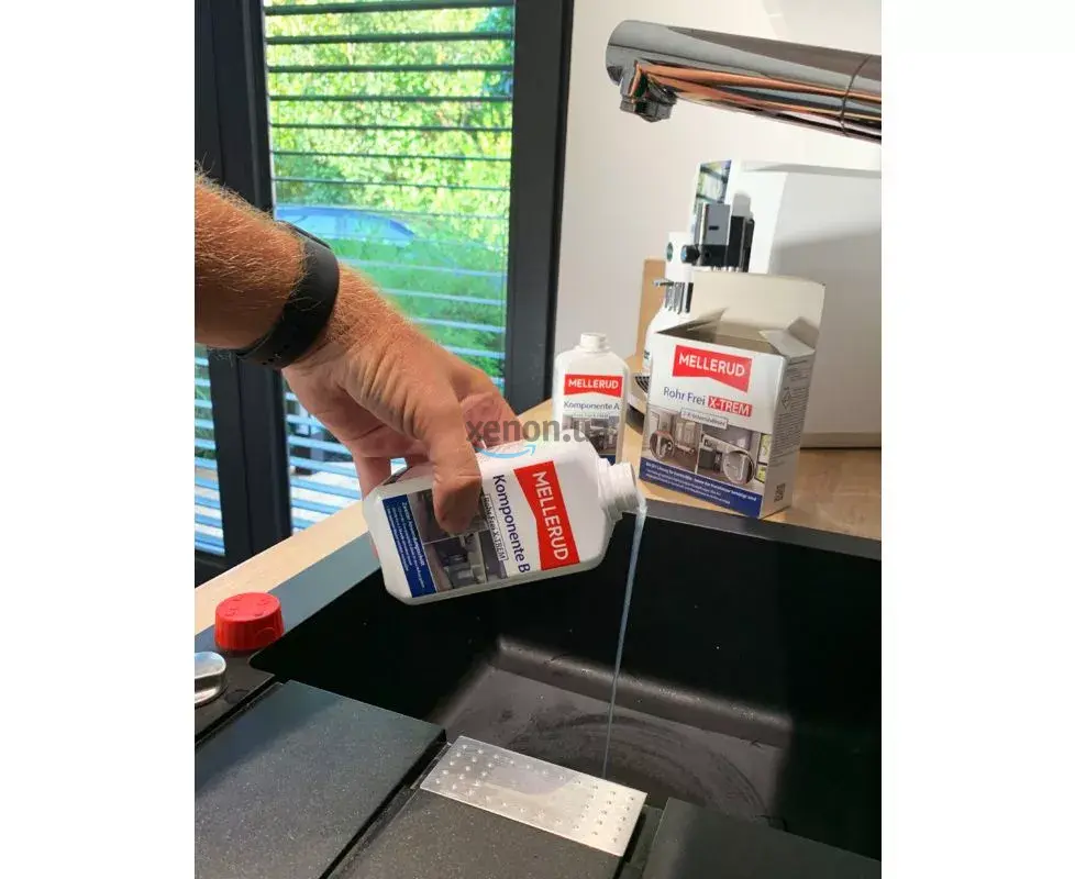 Двухкомпонентное средство для удаления волос в сифонах и трубах 2x500 мл MELLERUD (2003109199) имеет очень мощную 2х компонентную активную формулу против самых стойких засоров в стоках всех видов, раковинах или сифонах. Легкое применение без вспенивания и испарения. Оба компонента готовы к использованию. Удаляет засор от волос, остатков мыла, кожных жиров или зубной пасты в ванной комнате. Стоки на кухне также эффективно освобождаются от органических остатков пищи и жира. Особая активная формула не вызывает нагрев при воздействии, и это значит, что подходит для всех типов металлических и пластмассовых труб. Неприятные запахи устраняются сразу.