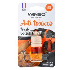 Ароматизатор подвесной WINSO Fresh Wood  на основе полимеров. Можно подвесить на зеркало заднего вида, на ручку, в багажник, на вешалку в автомобиле, а также дома в санузел, шкаф, кладовку. Автоосвежитель, представленный в стильном минималистичном дизайне. Яркая стеклянная бутылочка с...