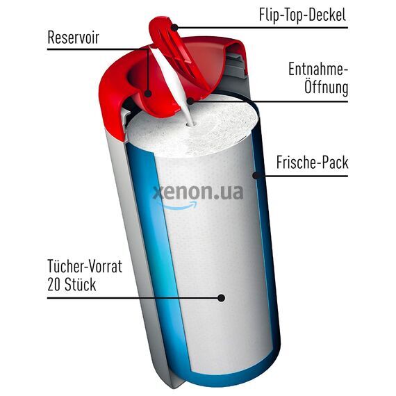 - Каждая салфетка остается свежей и влажной до тех пор, пока ее не снимут, благодаря пакету для сохранения свежести и откидной крышке с резервуаром.