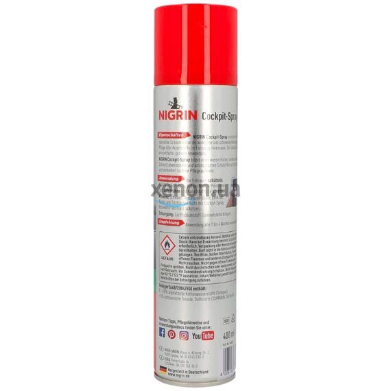 Немецкий пенный очиститель протектант для пластика с ванильным запахом NIGRIN Cockpit-Spray Vanille на 400 мл совместим со всеми типами пластика, винила, хрома. Он легко и безвредно очищает даже глубокие загрязнения, затем оставляет приятный запах и защитный слой от УФ-лучей и пыли.