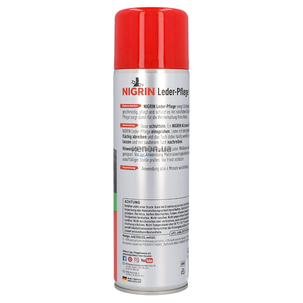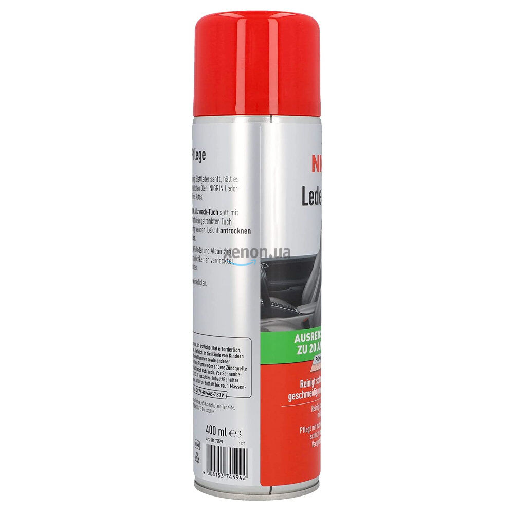 Немецкий интенсивный очиститель и кондиционер для кожи автомобиля NIGRIN Leder-Pflege на 400 мл - это универсальное средство 2 в 1 для очистки и защиты кожаных сидений, поверхностей, панелей автомобиля. Интенсивно очищает, увлажняет, защищает поверхность. Также подходит для бытового использования - домашних кресел, обуви. По сути, must have продукт, если у Вас кожаный салон. Совместим со всеми видами натуральной и не натуральной кожи, со всеми цветами.