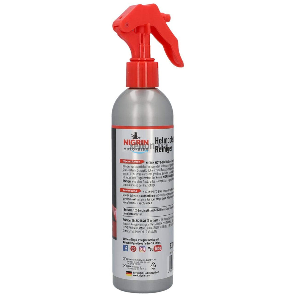 Немецкий очиститель мягких подушек мотоциклетного и велосипедного шлема NIGRIN Moto-Bike Helmpolster-Reiniger für Motorrad на 300 мл. Удаляет пятна, пот, пыль, грязь, нейтрализует запахи, освежает обивку мотоциклетного шлема, предотвращает усталость внутренней набивки шлема.