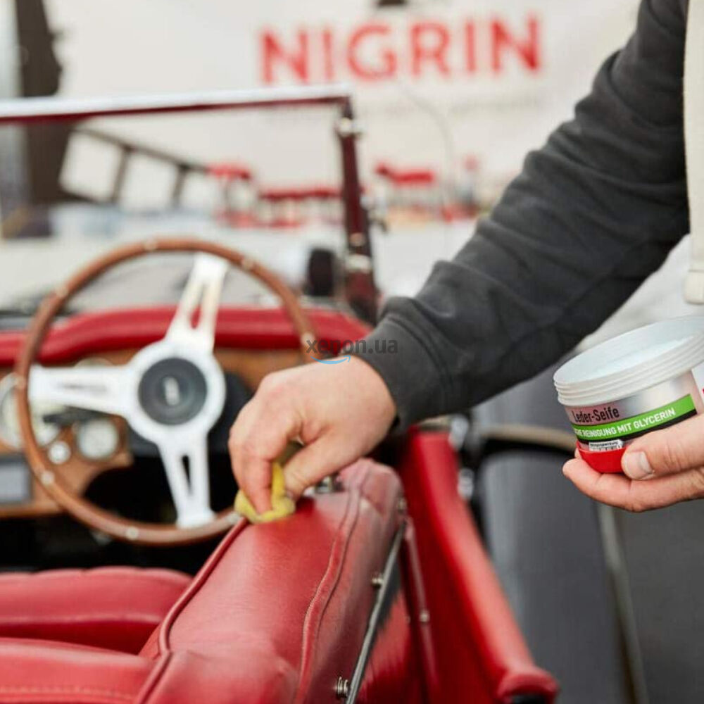 Очиститель кожи NIGRIN Performance Leather Soap нежно и безопасно очищает, увлажняет кожу авто, удаляет даже глубокие загрязнения, пятна, въевшиеся внутрь.