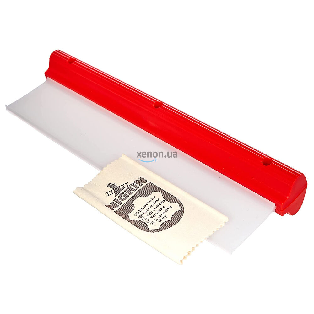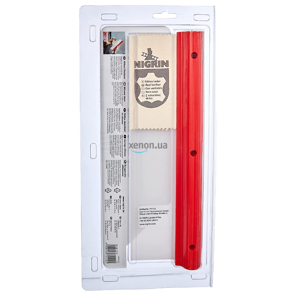 Немецкий силиконовый водосгон для сушки авто NIGRIN Performance Silikon-Trockner und Autoleder im Set с кожаной салфеткой для протирки (и сушки водосгона). Позволяет быстро высушить кузов без разводов, после мойки. Длина 30,5 см. Очень долговечный и качественный. В комплект входит фирменная кожаная салфетка NIGRIN для протирки водосгона. Перед использованием силиконового водосгона NIGRIN помойте автомобиль и ополосните его чистой водой.
