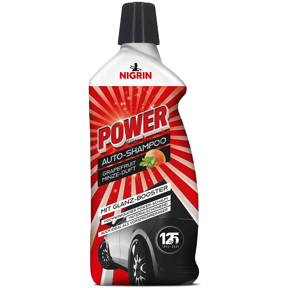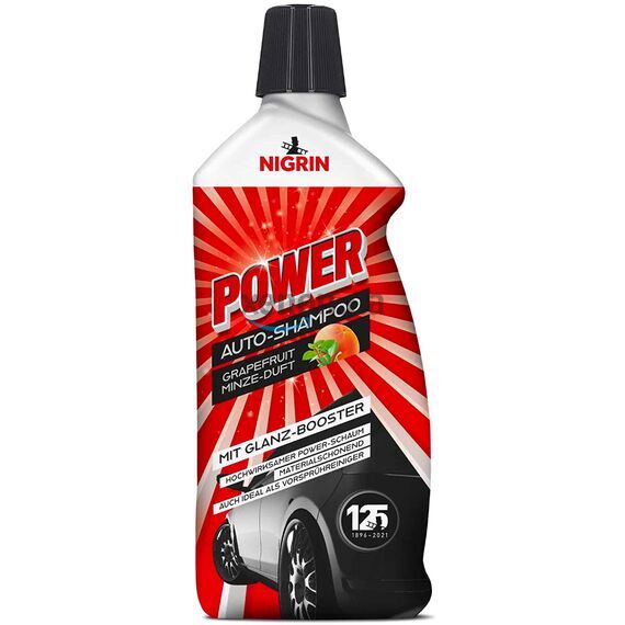 Немецкий концентрированный автомобильный шампунь с кондиционером NIGRIN POWER Auto-Shampoo mit Glanz-Booster в большой упаковке 1000 мл. Классический, для ручной мойки и пеногенератора, хорошо очищает и придает кузову блеск. Для быстрой мойки - смыть шампунь нужно до его подсыхания. Бесфосфатный, безвреден для поверхностей. Может использоваться с автомобилями, на которые нанесены защитные покрытия. Легко очищает грязь, совместим со всеми типами металлов и красок. Высоко концентрированный.
