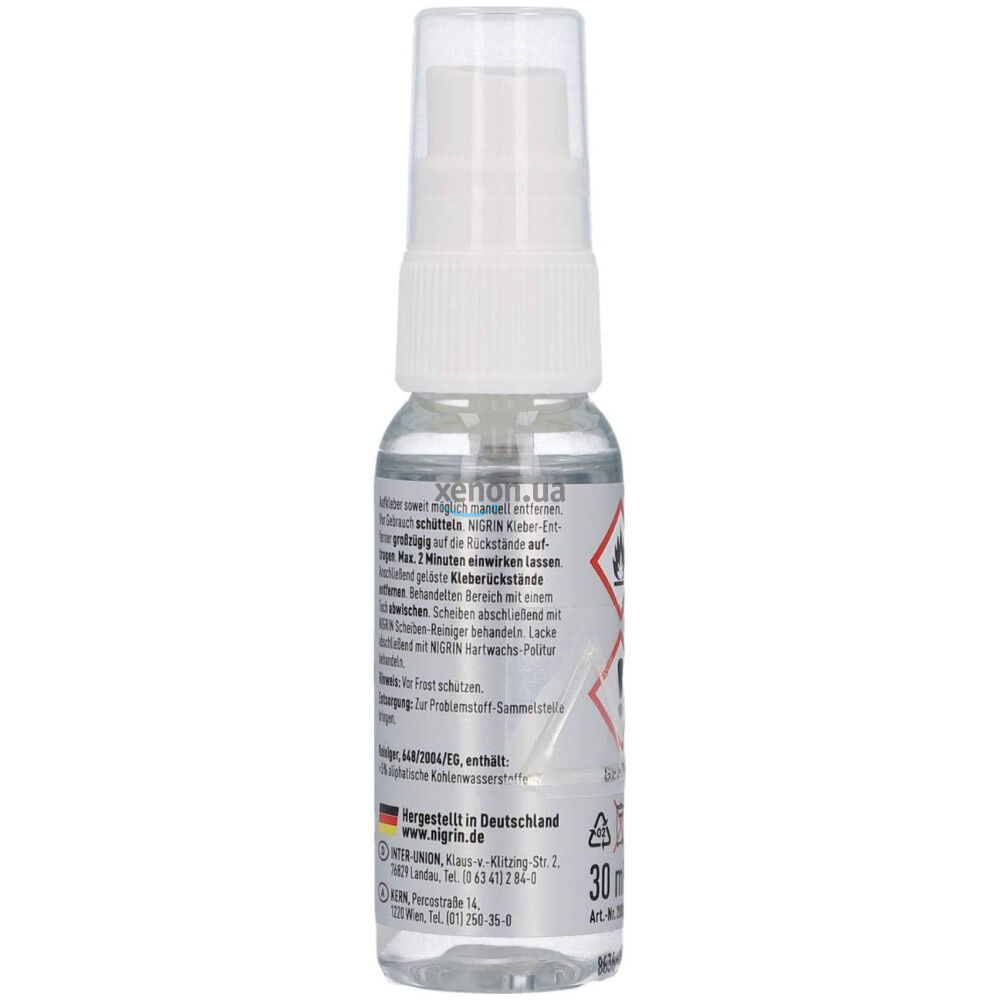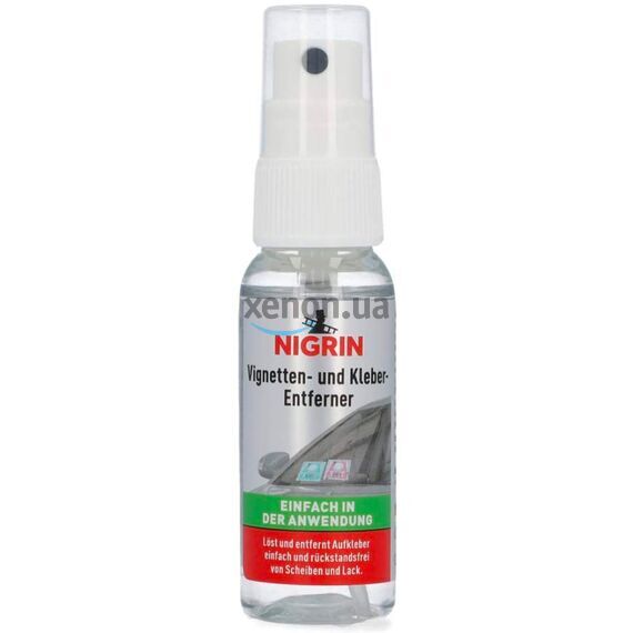 Немецкий удалитель наклеек, следов клея и краски NIGRIN Vignetten- und Kleber-Entferner в упаковке на 30 мл. Это безопасный и эффективный препарат для удаления наклеек, следов тонировки, краски, остатков клея на стеклах, кузове, пластике.