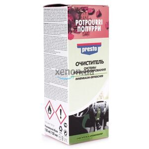 Автоматический очиститель кондиционера (поппури) Presto Innenraum-Erfrischer 217869  150 мл - эффективный аэрозоль для освежения и очищения систем вентиляции и кондиционирования в автомобилях. Удаляет грибки и бактерии. Использовать при температуре окружающей среды от +15°С до +20°С....
