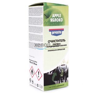 Автоматический очиститель кондиционера (яблоко) Presto Innenraum-Erfrischer 217883  150 мл - эффективный аэрозоль для освежения и очищения систем вентиляции и кондиционирования в автомобилях. Удаляет грибки и бактерии. Использовать при температуре окружающей среды от +15°С до +20°С....