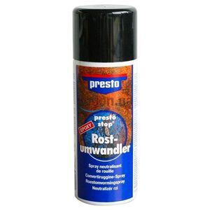 Преобразователь ржавчины Presto Rost Unwandler 232989 400 мл . Аэрозольный преобразователь ржавчины Presto используется для обслуживания авто-, вело- и мототехники, а также в быту. Инструкция: преобразователь ржавчины Presto Удалите с обрабатываемой поверхности грязь, жир и...